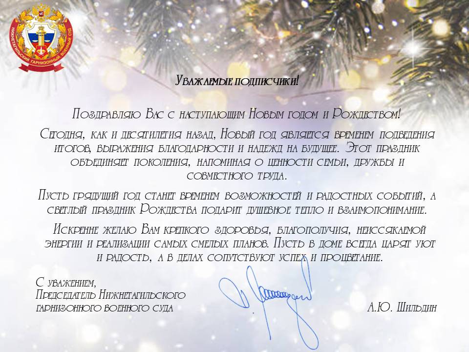 | Коллектив Нижнетагильского гарнизонного военного суда поздравляет с Новым годом и Рождеством! | версия для печати |