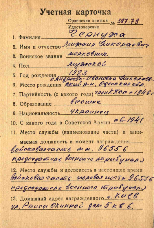 После окончания войны Михаил Николаевич продолжил службу в военном трибунале.